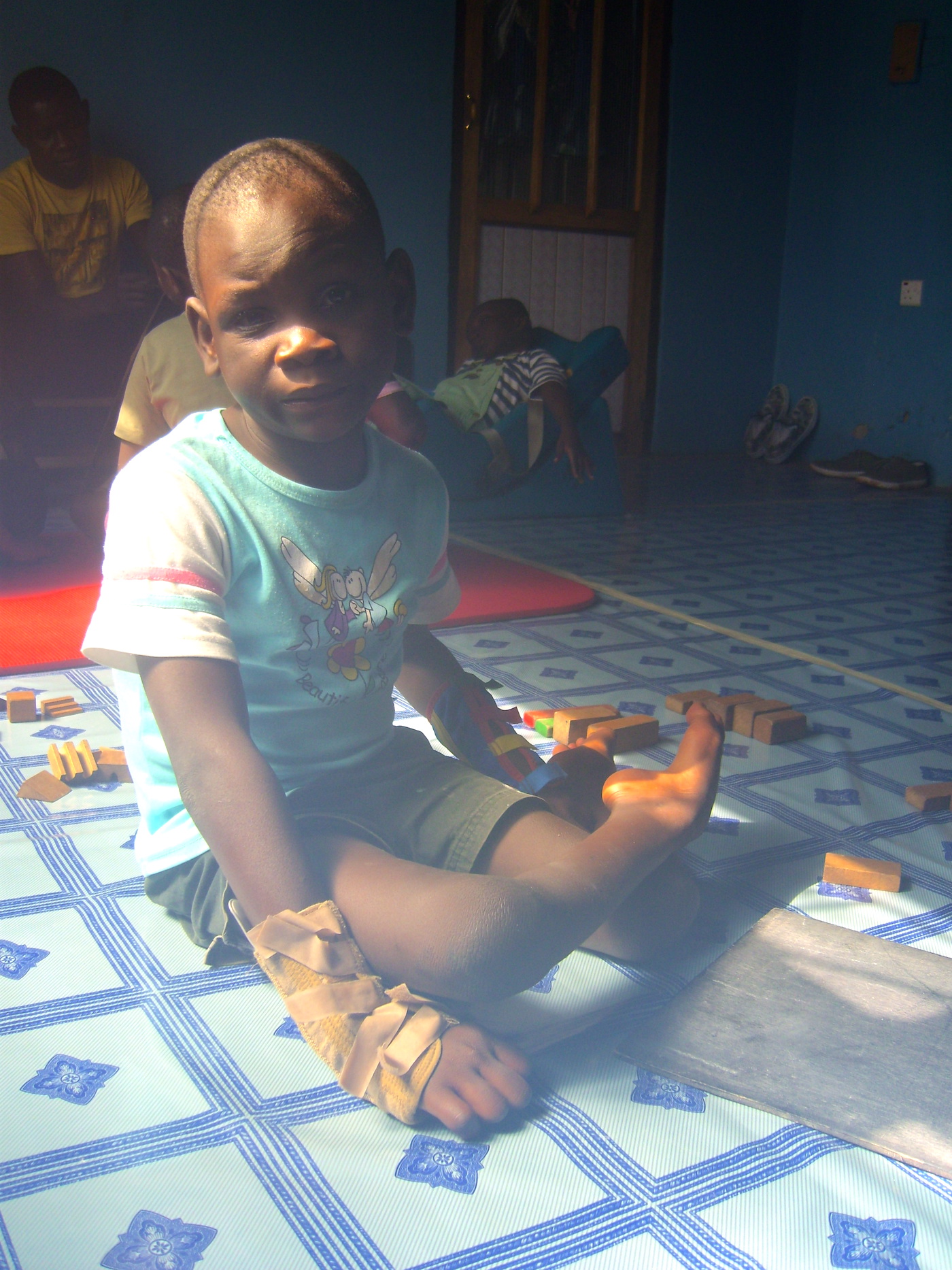 Godfred, ein 10jähriger Junge, der sich fortbewegt, indem er sich mit den Händen am Boden abstützt und Unterleib und Beine hinter sich her schleift, wurde uns von seiner Tante gebracht und gleich übergeben. Er ist nun unser 6. Kind.