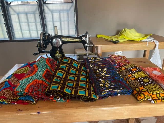 Rita, die Frau unseres Lehrers und Hausvaters Ayala, hat ein paar Monate nach der Geburt ihres dritten Sohnes einen Werkraum mit ihrer Schneiderei belegt. Jeden Nachmittag sitzen dort zwei bis drei unserer größeren Mädchen, schauen zu wie Rita schneidert (zunächst Festtagskleider für unsere Kinder) und versuchen erste Nähschritte von Hand.